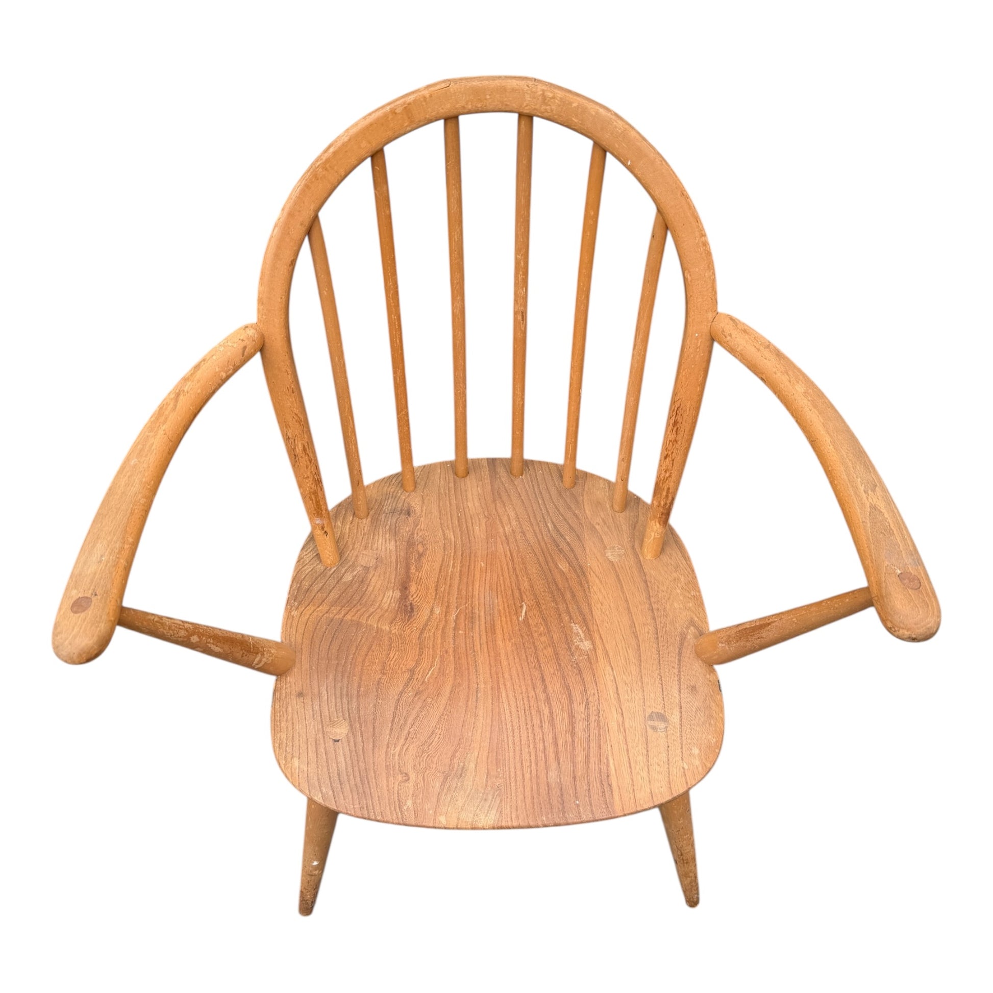Ercol Windsor Armchair – Mid Century Elm & Beech Seat Stick Back Chair