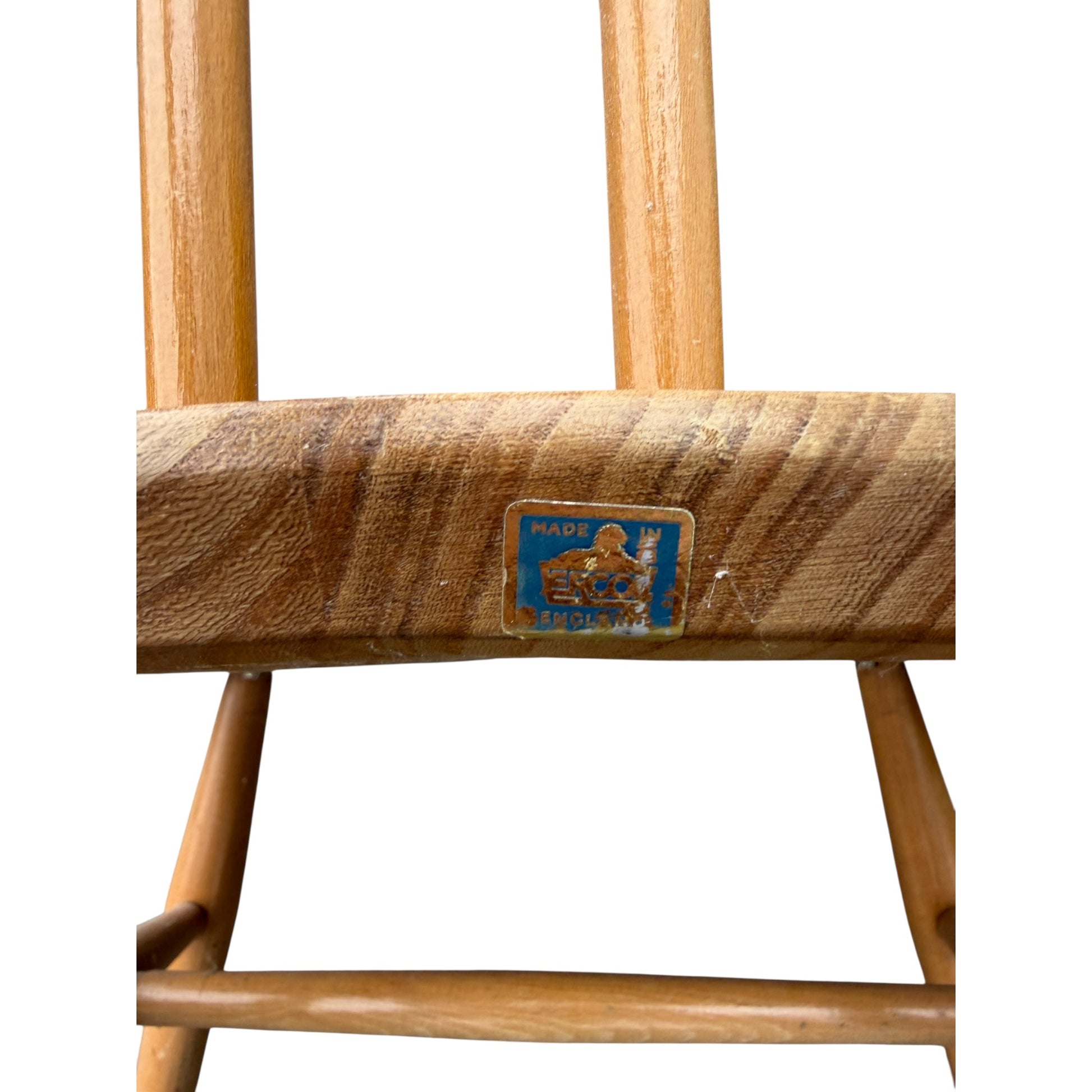The original blue and gold Ercol label is present to the back stretcher.