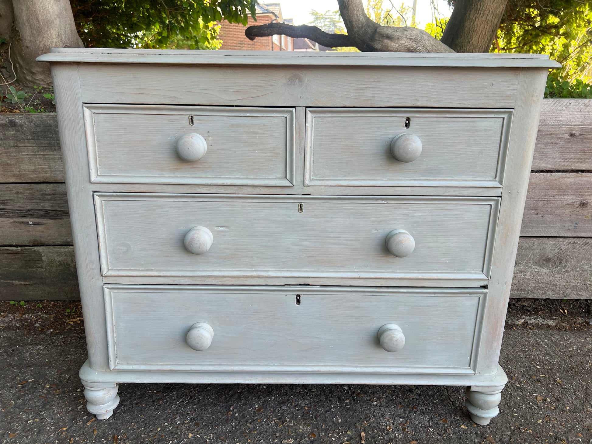 Grey Washed Solid Pine Two Over Two Chest Of Drawers